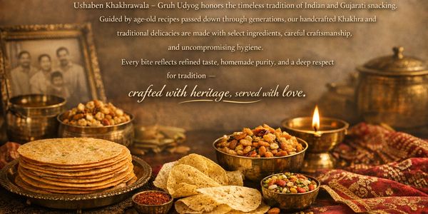 Ushaben Khakhrawala – Gruh Udyog honors the timeless tradition of Indian and Gujarati snacking. Guided by age-old recipes passed down through generations, our handcrafted Khakhra and traditional delicacies are made with select ingredients, careful craftsmanship, and uncompromising hygiene. Every bite reflects refined taste, homemade purity, and a deep respect for tradition .
